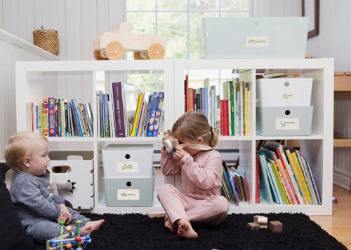 La salle de jeux, c’est l’endroit où les enfants passent généralement beaucoup de temps. Il est donc important de comprendre que c’est leur endroit à eux, leur royaume! Ainsi, il peut être embêtant pour eux de devoir demander de l'aide chaque fois qu’ils veulent un jouet parce que celui-ci n’est pas à leur portée ou qu’il est rangé à un endroit qui ne leur est pas accessible. Cette situation les rend dépendants de l’adulte et c’est bien évidemment le contraire de l’objectif visé. Il est donc préférable, principalement dans la salle de jeux, de laisser les jouets à la hauteur des enfants. Et, pour favoriser davantage leur autonomie, optez pour différents petits bacs de rangement plutôt que pour un gros bac contenant l'ensemble de leurs jouets. De cette façon, ces derniers seront mieux classés et ce sera plus facile pour les enfants de trouver ce qu’ils cherchent. Prenez aussi le temps de bien identifier chacun des bacs (découvrez ici nos étiquettes de rangement prévues à cet effet!), qui permettront à chacun d'identifier facilement le contenu du bac et de ranger sans difficulté!