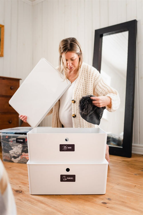 - Décorations saisonnières : deux bacs de rangement maximum