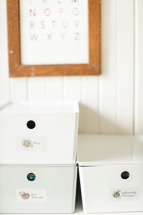 Un étiquetage précis vous garantit une expérience de décoration beaucoup plus agréable l'année suivante. Ainsi, plutôt que d'ouvrir quinze boites pour trouver les fameux bas de Noël, vous saurez exactement où les chercher. Prenez donc le temps de noter ces informations sur les étiquettes de rangement :