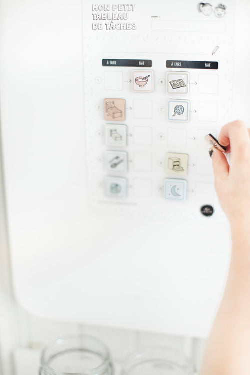 Nos magnétos de tâches sont offerts en paquets correspondant chacun à un niveau différent; ainsi, procurez-vous seulement ceux qui conviennent à l'âge de votre enfant!