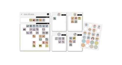 The avatars included with the board make it easy to personalize, add a playful side that children love and easily adapt to your family reality. Are your children getting old and find the avatars too "baby"? Instead, use the colored dots, on which you can write the first letter of their name using an erasable pencil.